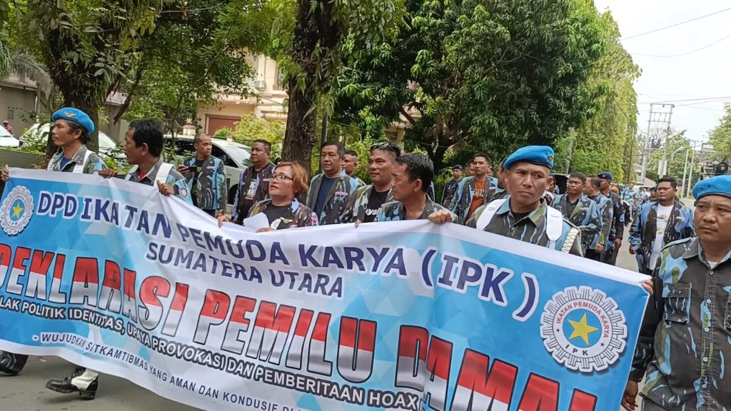 Satuan Tugas Dewan Pimpinan Daerah Ikatan Pemuda Karya Sumatera Utara (Satgas DPD IPK Sumut) gelar deklarasi Pemilihan Umum (Pemilu) damai tahun 2024.