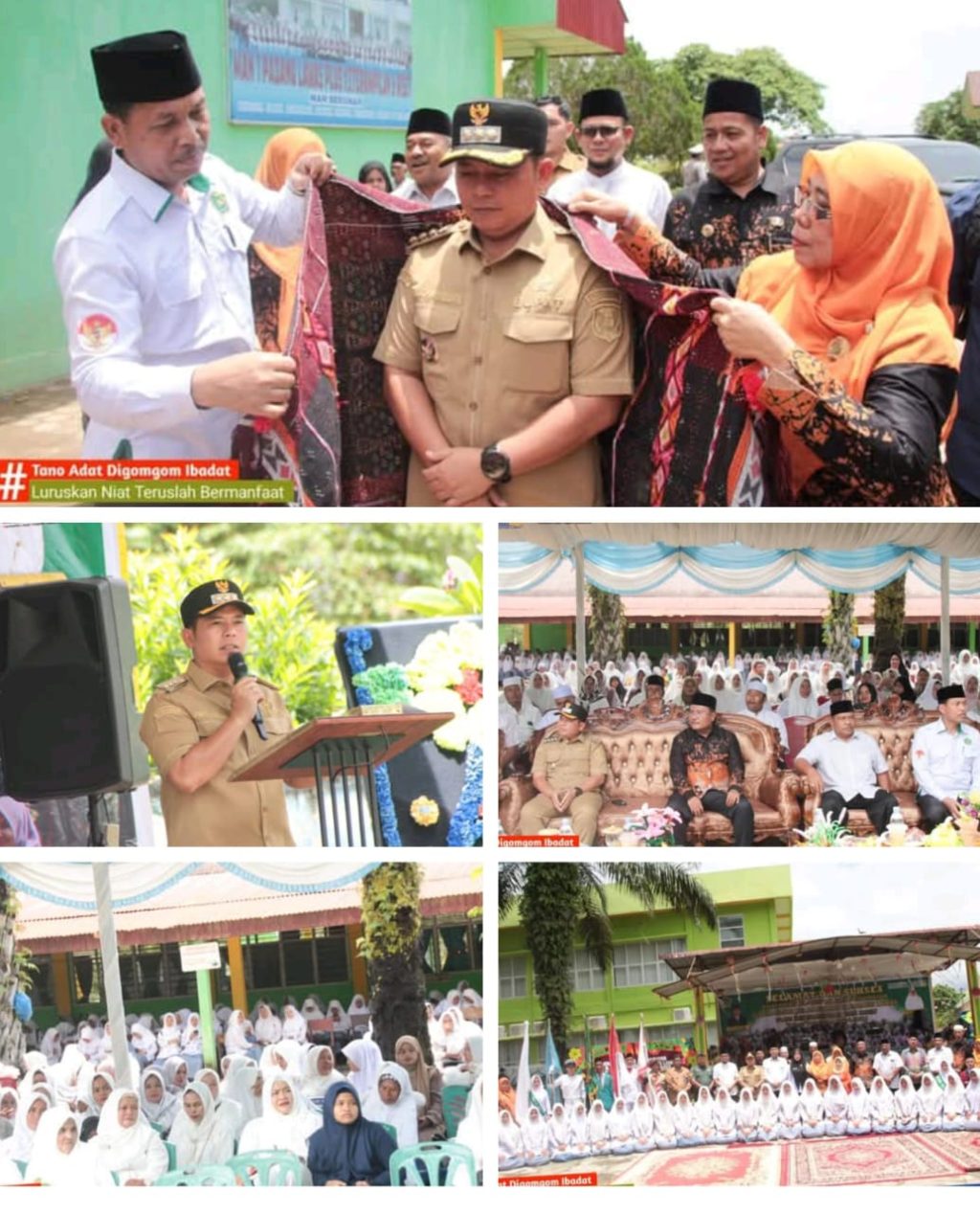 Kehadiran Bupati disambut baik oleh para dewan guru dan siswa-siswi MAN I Palas dengan memasangian Ulos sebagai simbol kasih sayang dan kecintaan kepada Putra Mahkota Alam Hasibuan.