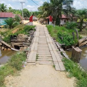 Kondisi Jembatan sangat memprihatinkan Sehingga melewati jembatan tersebut harus Ektra hati hati.