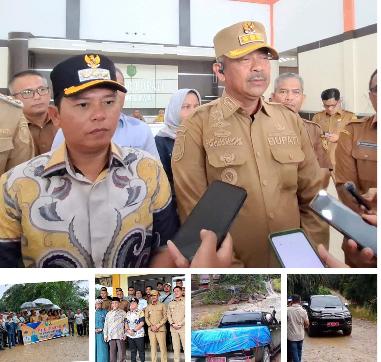 Dua Pimpinan Kabupaten tersebut melakukan kunjungan lapangan dalam peninjauan lokasi jalan dari Kabupaten Padang Lawas menuju Kabupaten Mandailing Natal.