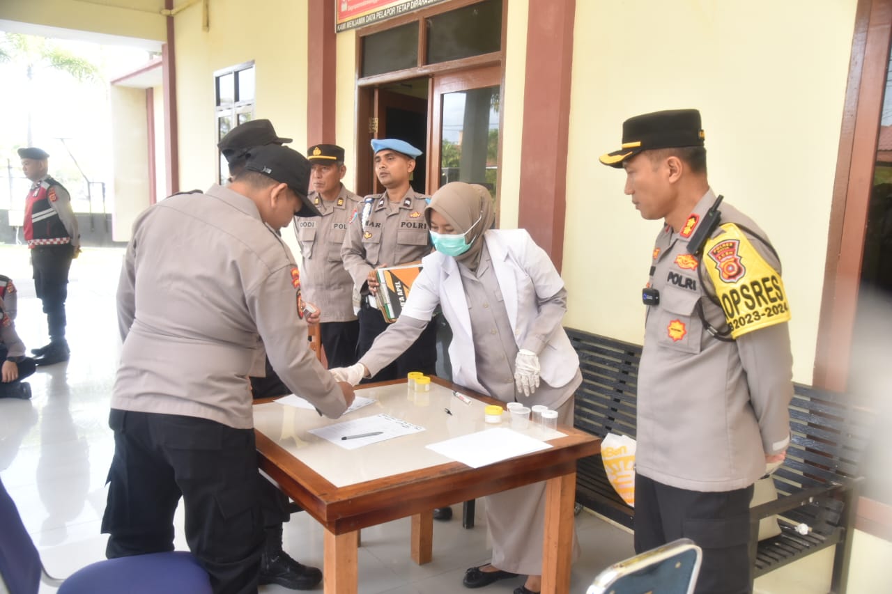 Kapolres Bireuen AKBP Jatmiko, S.H., M.H., memimpin langsung Tes Urine secara mendadak dan Acak terhadap Personil setelah Apel Pagi, Selasa 16 Januari 2024.