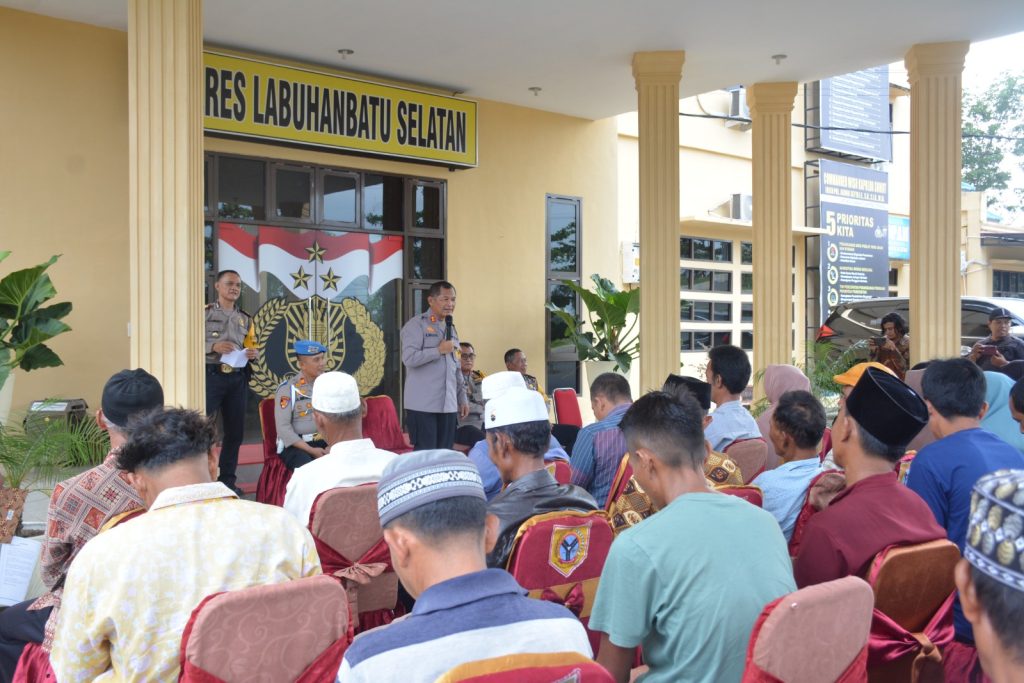 Demikian ungkapan Kapolres Labuhanbatu Selatan, AKBP Maringan Simanjuntak, S.H.,M.H., saat pelaksanaan kegiatan Jum’at Berkah bersama para Bilal Mayit dan penggali kubur di Mapolres Labuhanbatu Selatan,Desa Sosopan Kabupaten Labuhanbatu Selatan, Jum’at (2/2).