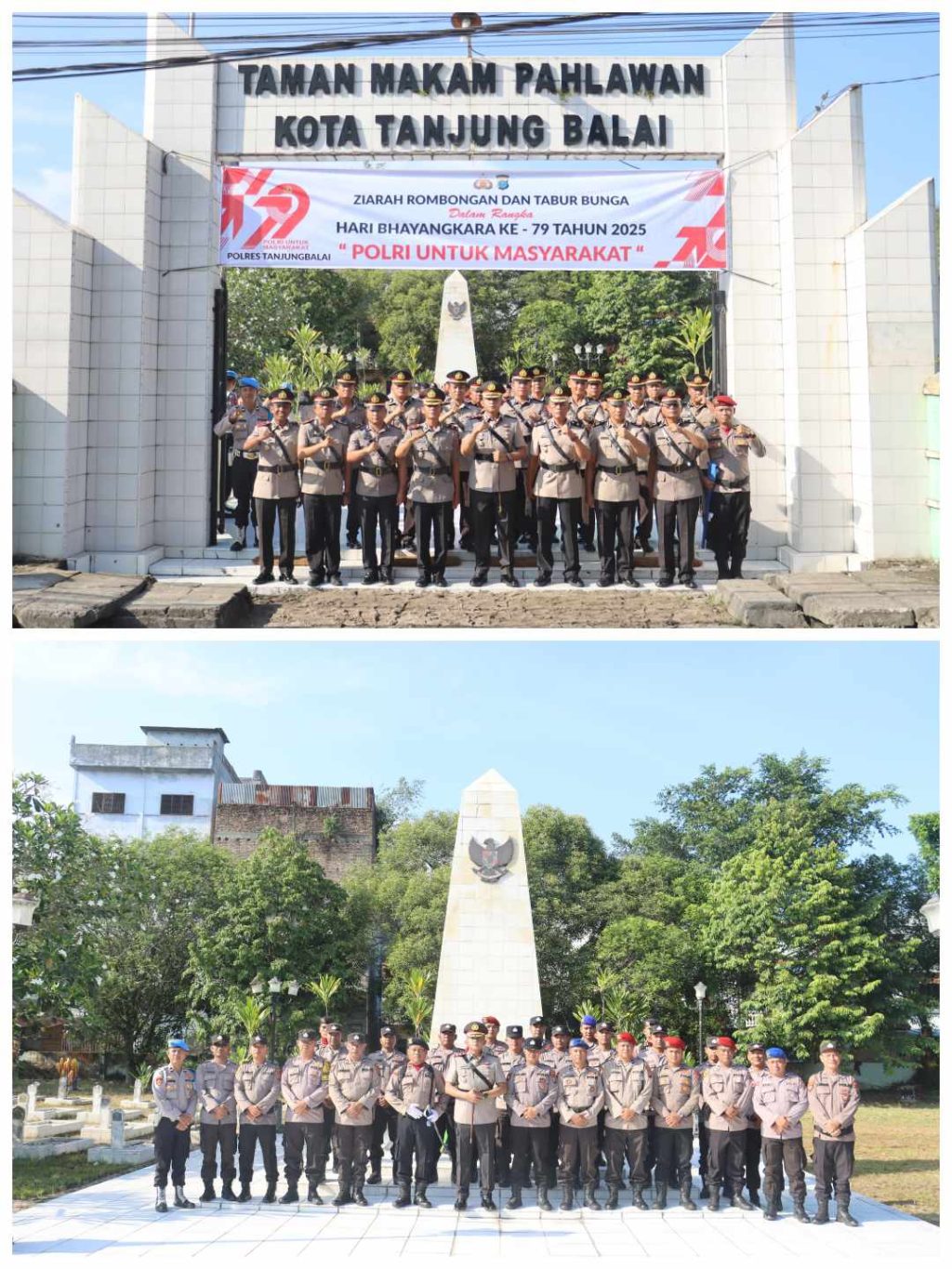 Dalam rangka menyambut Hari Bhayangkara ke-79 tahun 2025, Polres Tanjungbalai menggelar upacara Ziarah Rombongan dan Tabur Bunga di Taman Makam Pahlawan (TMP) Jalan Pahlawan, Kelurahan TB Kota II, Kecamatan Tanjungbalai Selatan, Kota Tanjungbalai, Sabtu (21/6/2025) pagi.