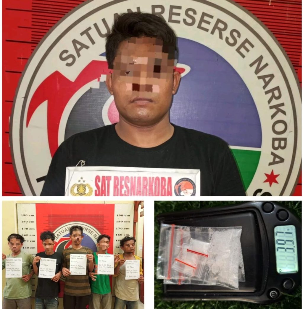 “Tepat pada pukul 07.00 Wib tim opsnal satresnnarkoba berhasil mengamankan SH, yang dimana di duga sebagai pengedar narkotika jenis sabu dan berhasil juga di amankan 5 orang lain yang sedang ingin membeli narkotika jenis sabu”, ujarnya.