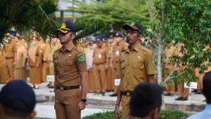 Penyerahan ini, usai memimpin apel gabungan di halaman kantor Bupati pada Senin (9/2).